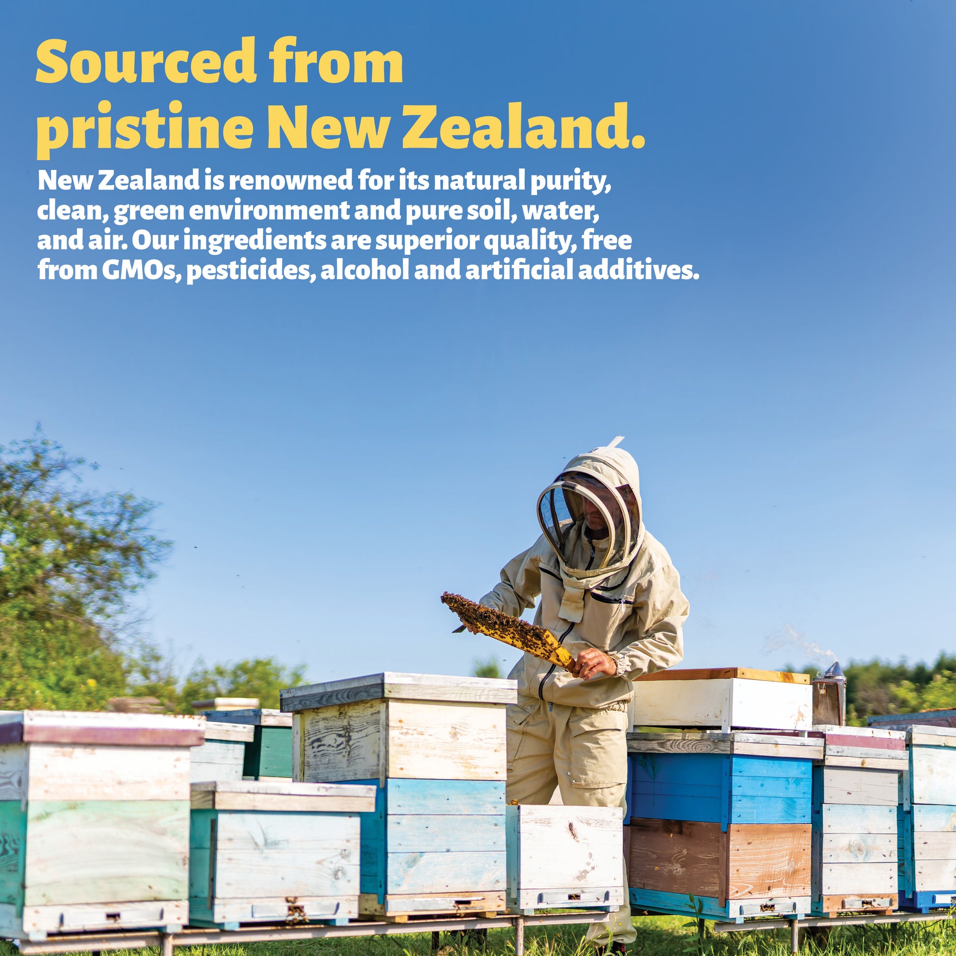Research shows that New Zealand Propolis contains the highest flavonoid content (antioxidants) of all global sources – making it a superior choice for natural immune and oral support.